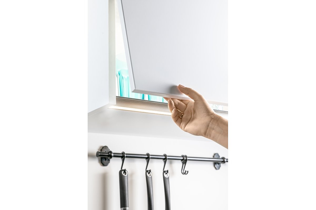 Коронните профили се използват най-често в стенни кухненски шкафове и изпълняват двойна функция: осветяват работното пространство, като същевременно заместват дръжката за отваряне на предната част. Това решение често се среща в шкафове, базирани на системи за отваряне с натискане.