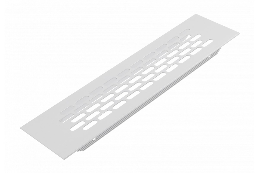 Алуминиева вентилационна решетка в цвят бял. Вентилационната решетка работи добре при вграждане на уреди за вграждане в кухнята и банята м. вградена фурна, хладилник. Вентилационната решетка осигурява правилна циркулация на въздуха, предотвратява прегряване на мебелите и отлагане на влага в структурата им. Вентилационната решетка е подходяща за монтаж в мебели, но не може да се използва в стени и вентилационни канали.