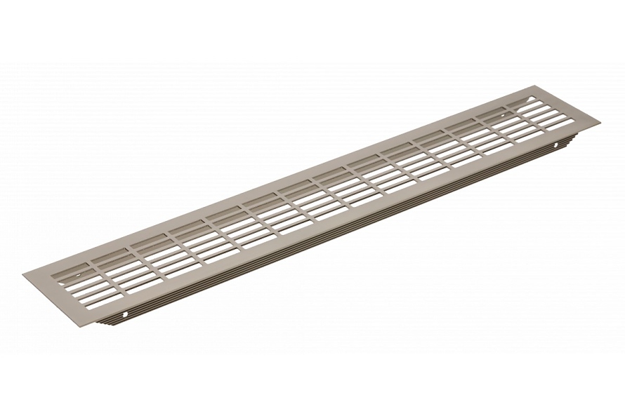Алуминиева вентилационна решетка в цвят бял. Вентилационната решетка работи добре при вграждане на уреди за вграждане в кухнята и банята м. вградена фурна, хладилник. Вентилационната решетка осигурява правилна циркулация на въздуха, предотвратява прегряване на мебелите и отлагане на влага в структурата им. Вентилационната решетка е подходяща за монтаж в мебели, но не може да се използва в стени и вентилационни канали.