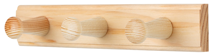 Дървена закачалка 3 куки , небоядисана, бор 180x35, FSC