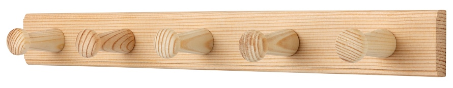 Дървена закачалка 5 куки , небоядисана, бор 400x50, FSC