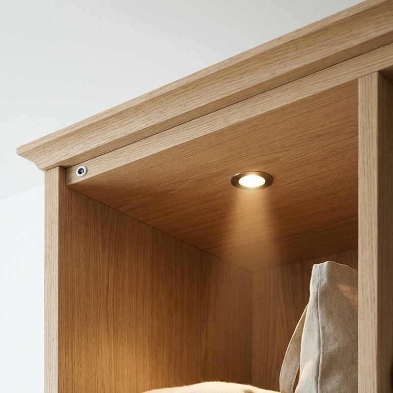 IR INTRA е компактен инфрачервен превключвател, работещ с инфрачервени лъчи, предназначен за автоматично управление на LED осветлението в мебелите. Той е идеален за шкафове с една врата, чекмеджета и по-малки вградени шкафове.