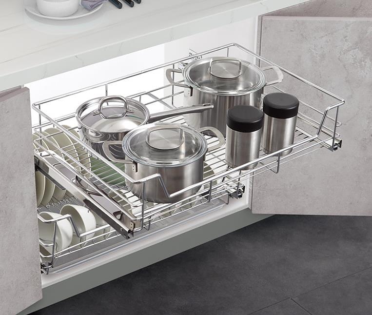 Телескопична хромова кошница с плавно прибиране тип чекмедже за шкаф 60см и дълбочина 460мм.