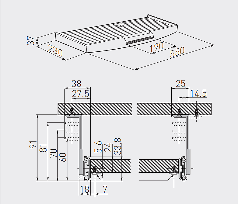 Тази издърпваща се поставка за клавиатура ви спестява място на бюрото. Ако клавиатурата не е необходима, тя може просто да се пъхне под масата. За да направи издърпването на клавиатурата още по-практично, то е оборудвано с място за мишката.