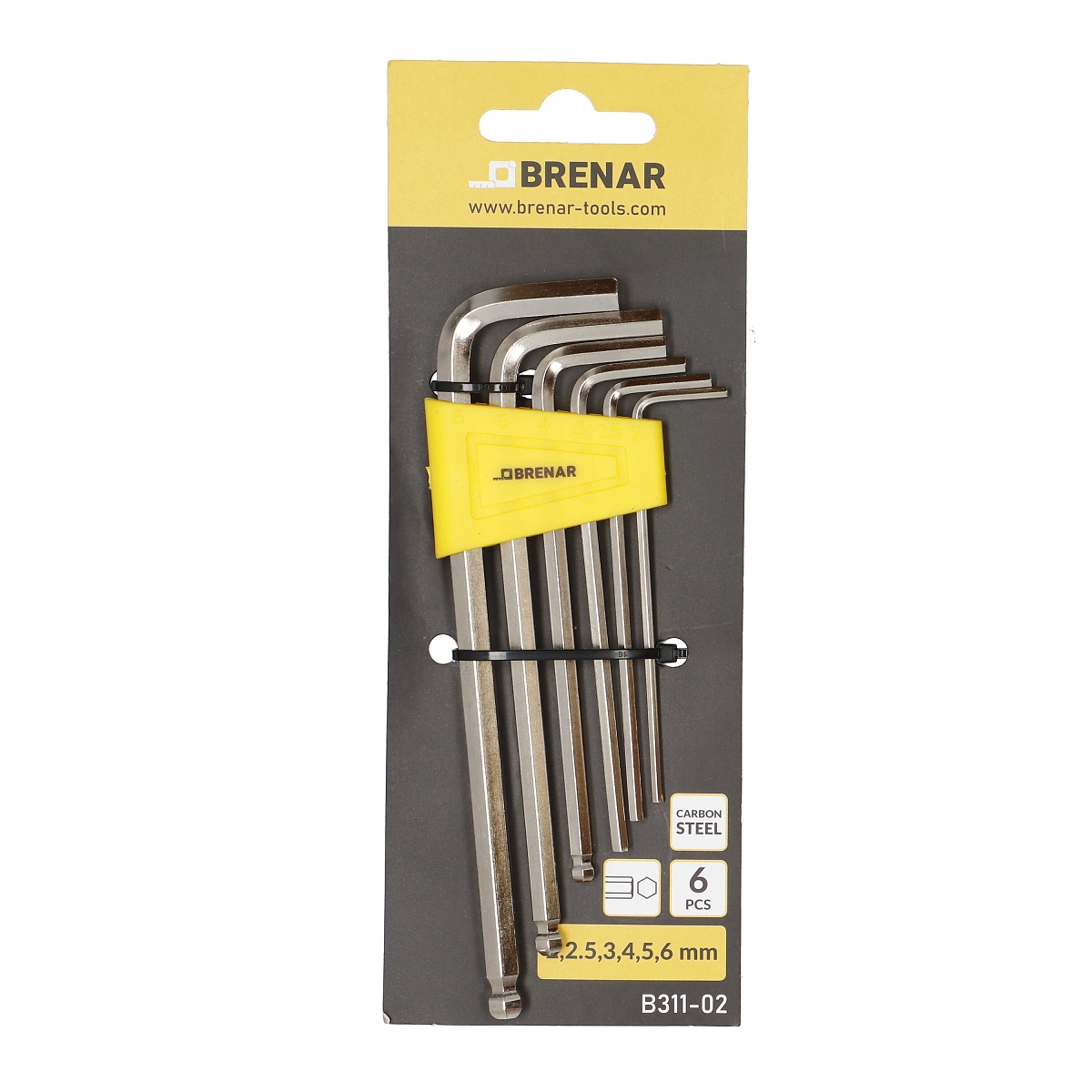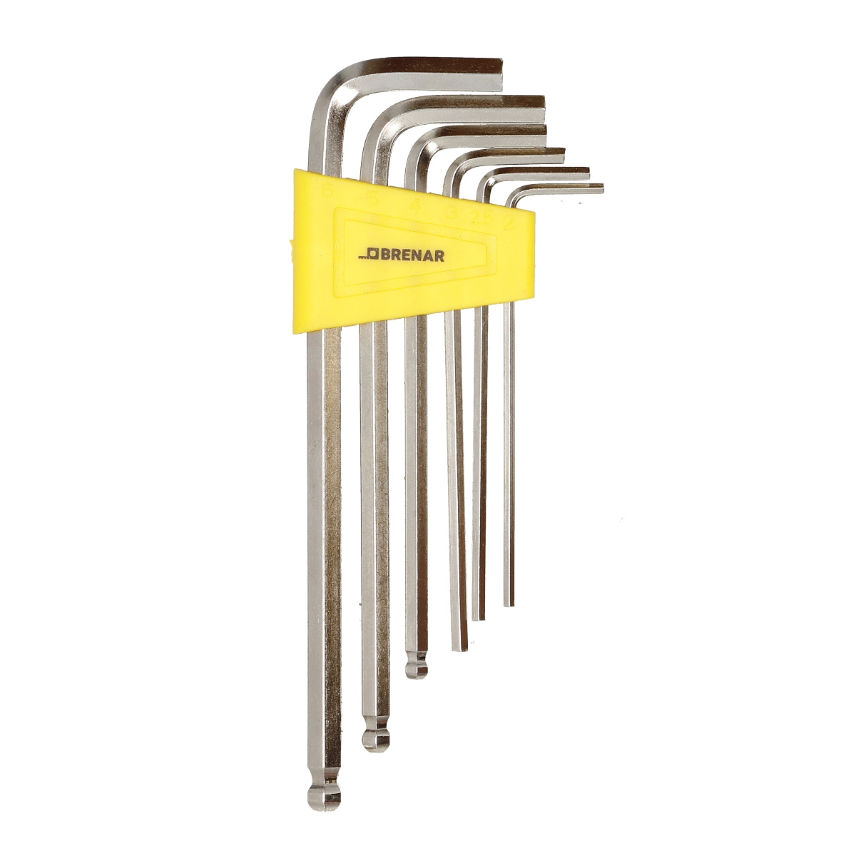 Комплектът шестостенни ключове BRENAR е практичен и издръжлив инструмент, предназначен за работа с шестостенни вложки. Изработен от издръжлива въглеродна стомана, той е подходящ за сервиз, монтаж и работилница. Този компактен комплект включва шест от най-популярните размери, което го прави незаменима част от оборудването за всеки ентусиаст „Направи си сам“.