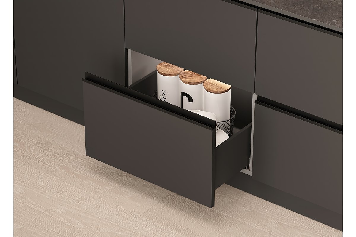L-образният профил с шипове е модерно решение, което може да бъде алтернатива на традиционните дръжки за мебели. Идеален за кухненско, фоайе и офис обзавеждане. Простият дизайн позволява фин ефект на интегриране на профила с предната част на мебелите. Профилите ще осигурят комфорт при употреба, съчетан с дискретност - дръжката е деликатна и няма да доминира предната част на мебелите. Предлага се в универсалният цвят: черен мат и с дължина 3500 мм. За техническа информация моля натиснете тук.