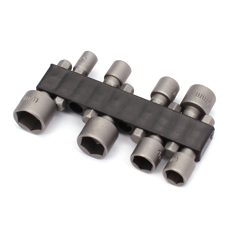 Комплект битове с 6 точки с размери 5-6-7-8-9-10-11-12 mm. Накрайниците са изработени от хром-ванадиева стомана и допълнително закалени, което позволява ефективно развиване на винтове и гайки. Стандартната опашка от 1/4 инча позволява бърза смяна на подходящия накрайник.
