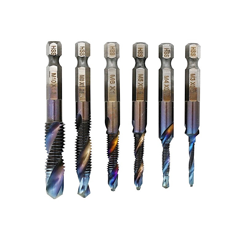 - Комплект от 6 резбонарезни свредла, размери от M3 до M10