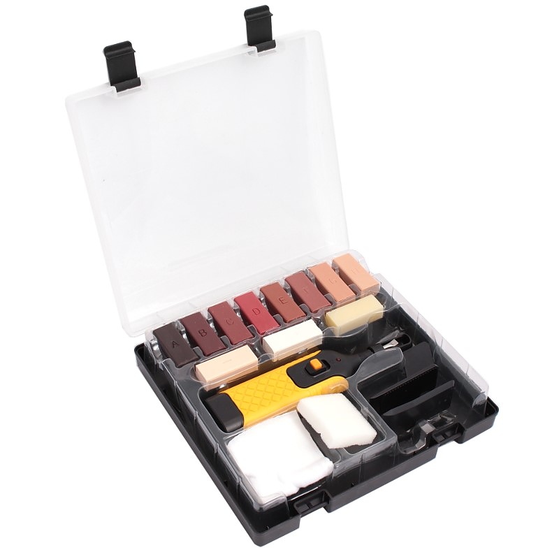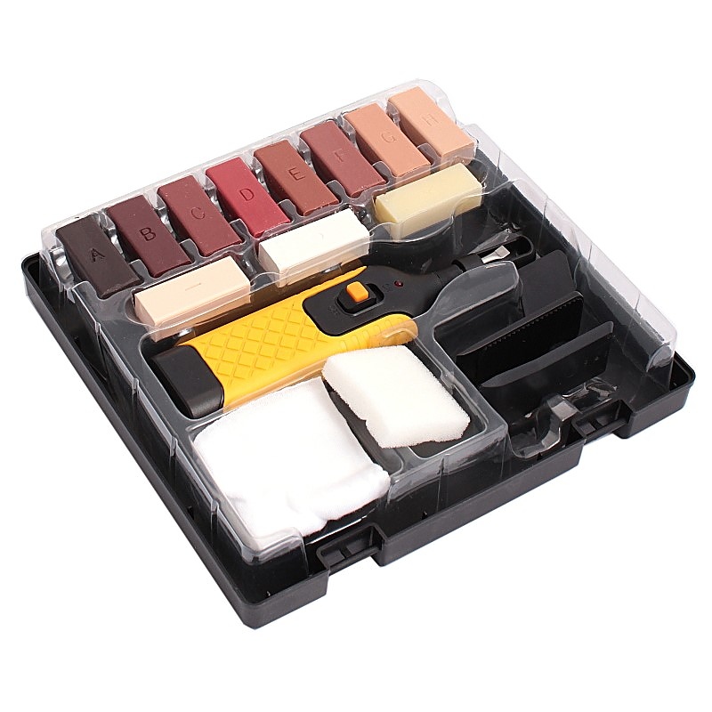 Примери за проблеми, които този комплект решава, включват: драскотини от местещи се столове върху ламиниран паркет, вдлъбнатини и отчупени ръбове по дъски, малки дупки от винтове в мебели и точни вдлъбнатини по корнизи и фронтове.