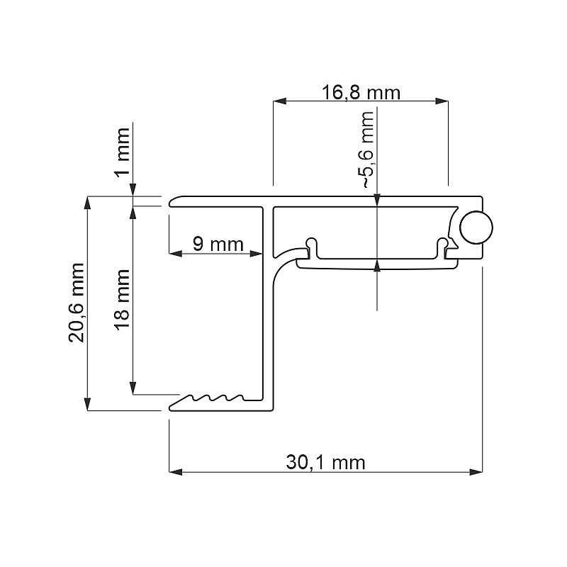 Профил, предназначен за шкафове без дръжки.