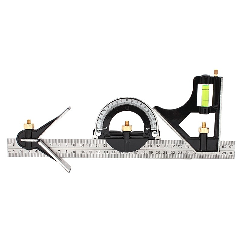 Универсалният многофункционален ъгъл ПРОТЕХНИК KTZ е прецизен инструмент, предназначен за измерване и маркиране при различни работи в цеха и дома. Изработен от комбинация от неръждаема стомана и алуминий, този инструмент е оборудван с набор от функции, включително транспортир, прав ъгъл, линийка, дълбокомер, нивелир и квадрати с различни форми. Метричната скала е гравирана и покрита с черна боя, което повишава четливостта на показанията. Стилус, поставен в корпуса, улеснява маркирането на измерените разстояния. Всички компоненти на инструмента са мобилни, така че могат да се местят по линийката, адаптирайки се към текущите нужди на потребителя. Повърхността на винкела е полирана и лакирана, което го прави устойчив на външни условия.