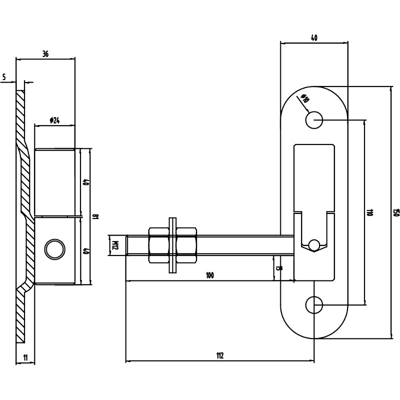 Регулируема панта с резба М12 , предназначена за монтаж на летящи портали и врати. Има планка с два отвора за завинтване и регулиране. Позволява оптимално регулиране на пантата след завършване на монтажа.