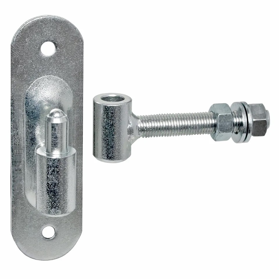 Регулируема панта с резба М16 , предназначена за монтаж на летящи портали и врати. Има планка с два отвора за завинтване и регулиране. Позволява оптимално регулиране на пантата след завършване на монтажа.