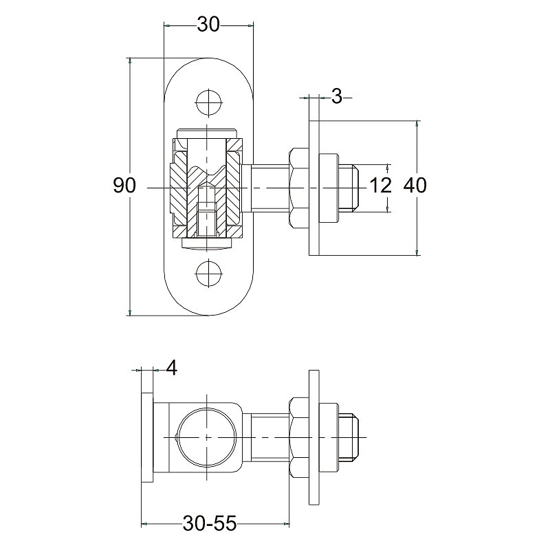 Панта за метална врата с реглаж. M12 L-35 30x90x4 mm