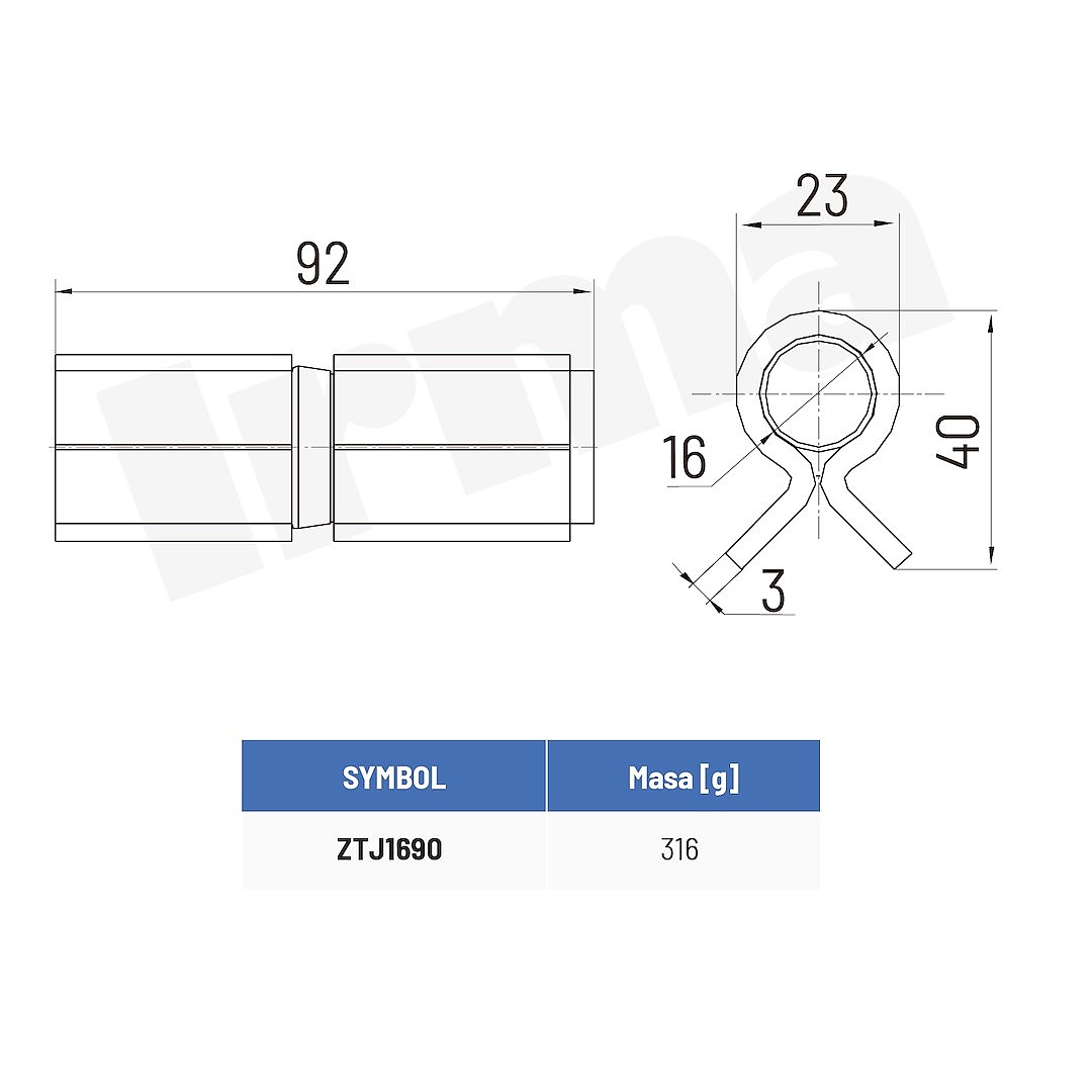 Панта за заваряване 360° 16/40x92x3mm/90°