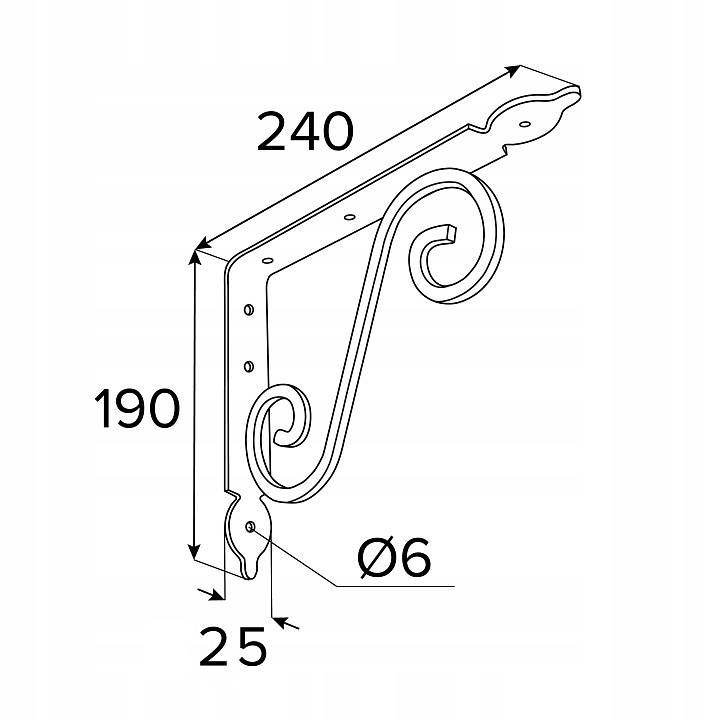 ДЕКОРАТИВЕН СТОМАНЕН РАФТОНОСАЧ 190x240x25x3.0, ГРАДУИРАН ЧЕРЕН, е солидно дизайнерско решение за тези, които ценят както издръжливостта, така и естетиката. Изработен от стомана DC01, носача е идеален за монтаж на рафтове в стилни интериори, а орнаменталният ѝ дизайн добавя уникален характер на всяка стая.