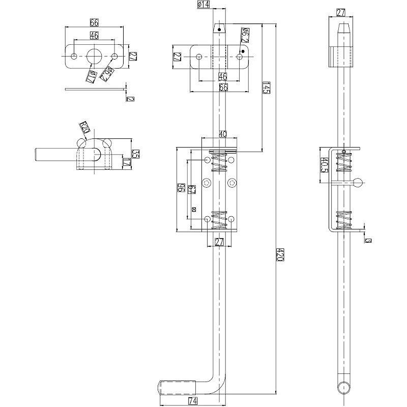 Резето 420 мм с диаметър 14 мм съчетава лесен монтаж с универсална употреба за врати, порти и вратички. Черното прахово боядисано покритие улеснява естетическото съчетаване с популярните цветове на дограмата и оградите.