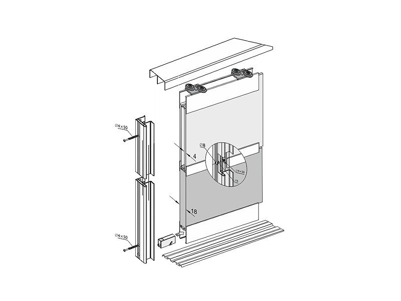 Система за плъзгащи гардеробни врати с долно водене - за стъкло и 18 мм ПДЧ АВЕНТО 22, цвят инокс