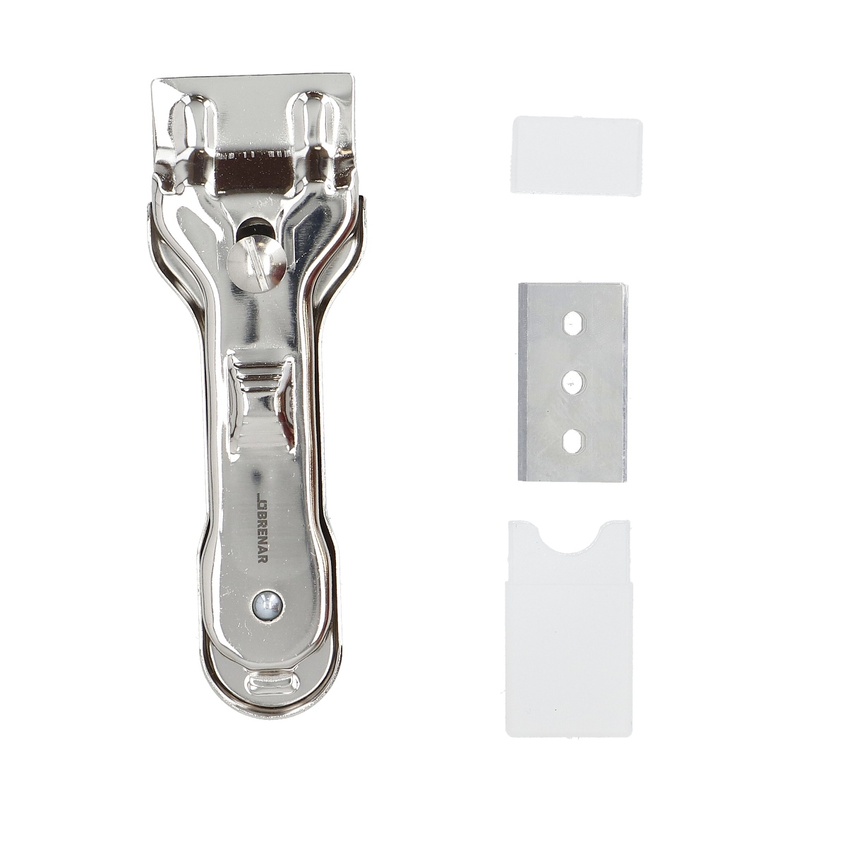 Металната стъргалка BRENAR B364-02 е практичен и издръжлив инструмент, предназначен за почистване на повърхности от упорити замърсявания. Тя е идеална за премахване на загорели остатъци от керамични котлони, както и за почистване на прозорци, огледала, стъкло и керамични повърхности. Здравата ѝ метална конструкция осигурява лесна употреба и дълъг експлоатационен живот, което я прави незаменима както за домашна, така и за професионална употреба.