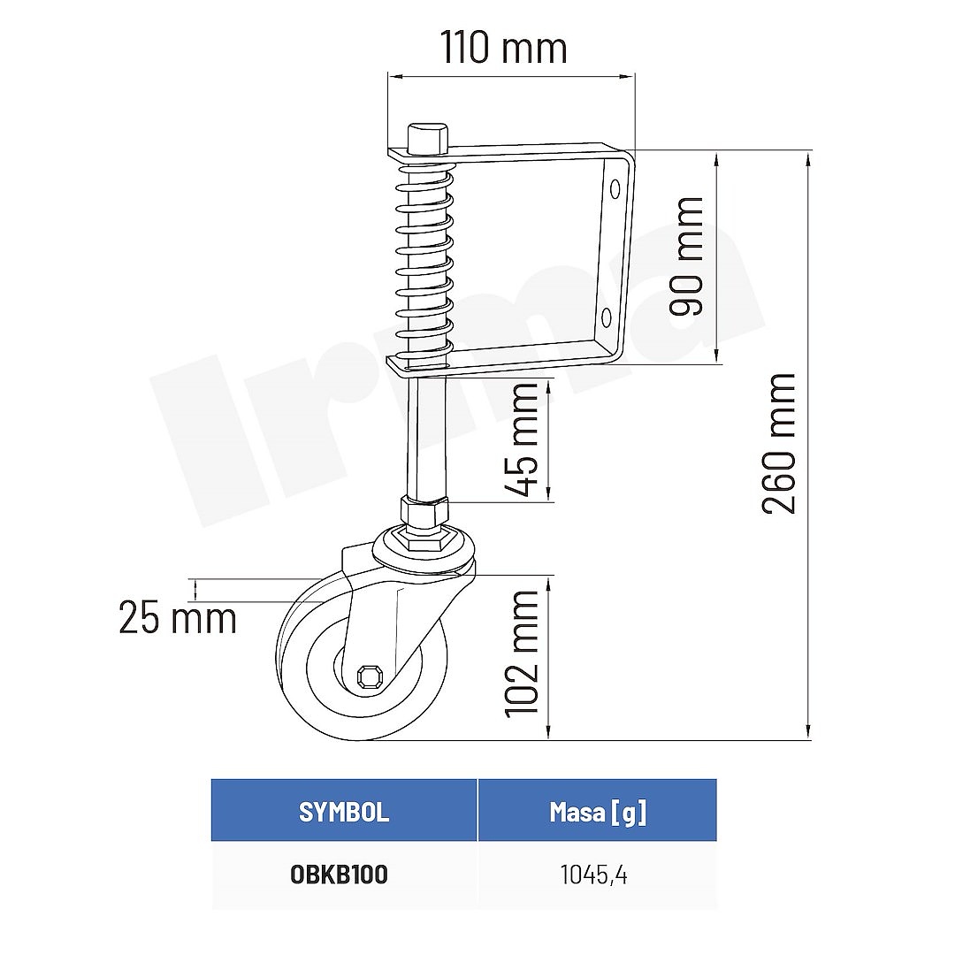Въртящо се колело 100/260 мм със пружина за порта