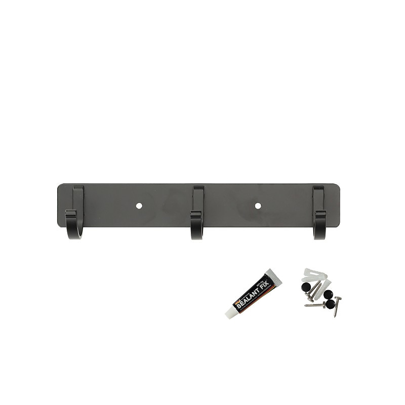 Компактната закачалка улеснява бързото организиране на най-важните аксесоари в дома и работилницата. Множеството опции за монтаж улесняват адаптирането ѝ към различни повърхности и приложения. Здравата стоманена конструкция и черното прахово покритие гарантират функционалност и неутрален вид във всяко пространство.