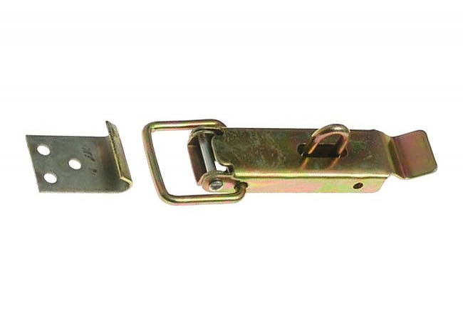 Фината поцинкована повърхност го прави по-красив и подходящ за заключване на шкафове. Закопчалка със закопчалка за катинар, която може да се използва като ключалка за врата на ремарке.