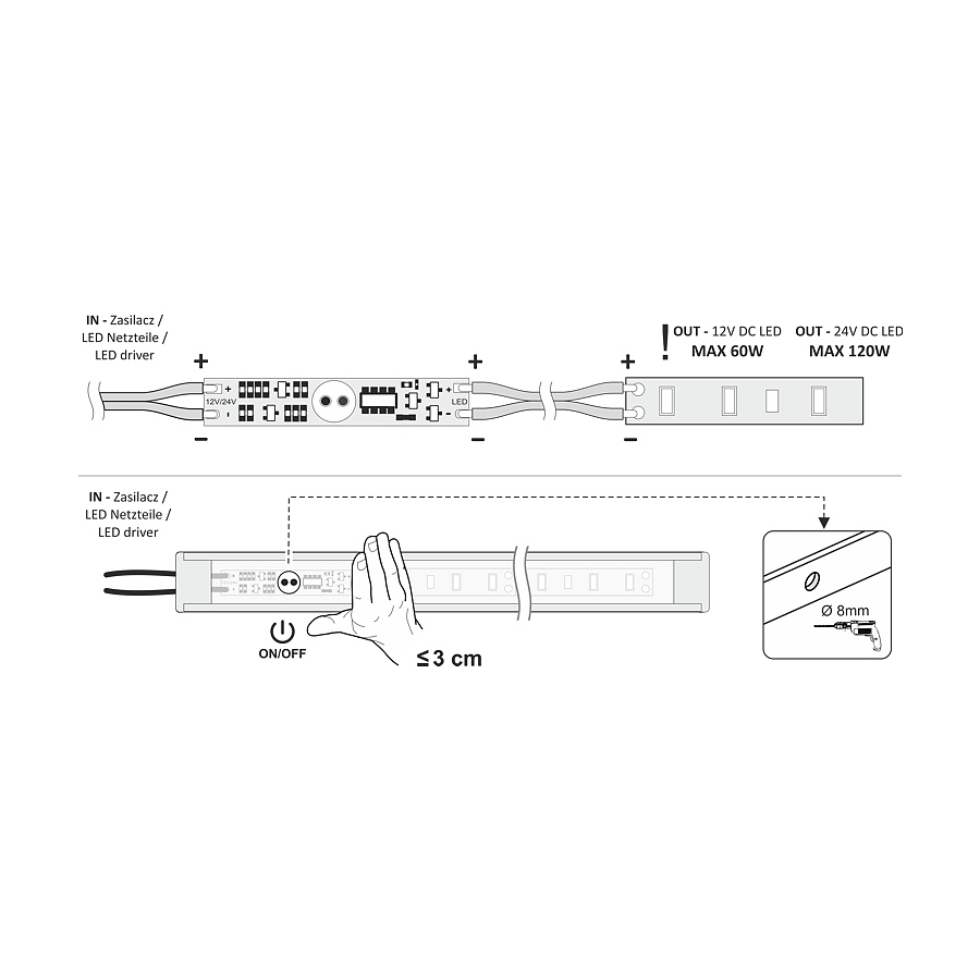 Достатъчно е да доближите ръката си на разстояние около 3 см , за да управлявате осветлението в профила.