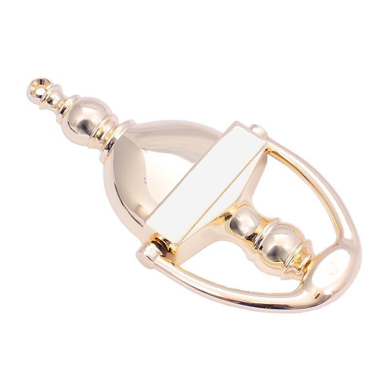 Чукалото за врата AMFORA-XL 150 mm е елегантно чукало за врата, перфектно като звънец. Изработен е от златисто полиран метал, което му придава изискан вид. Предлагат се и други цветове, като античен месинг (патина) и стара мед.