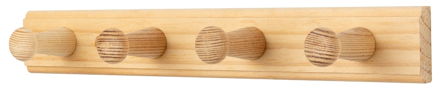 Дървена закачалка 4 куки , небоядисана, бор 240x35, FSC