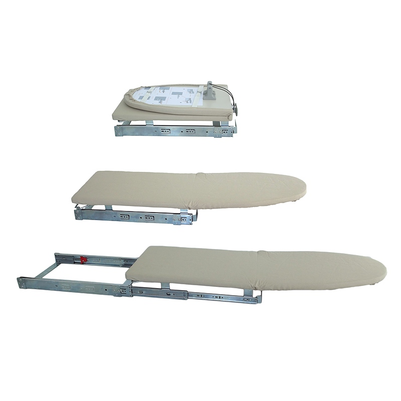 Дъската за гладене е проектирана да се прибере в пространството на чекмеджето на повечето шкафове и може да бъде достигната само чрез издърпване на чекмеджето и разгъване на дъската.