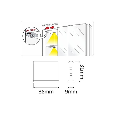 Ключът включва и изключва осветлението, като регистрира движение в зона от 15 см. Перфектен за мебели с класически и плъзгащи се врати. Отварянето на вратата включва светлината, затварянето я изключва.