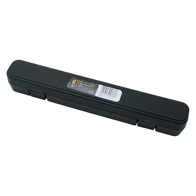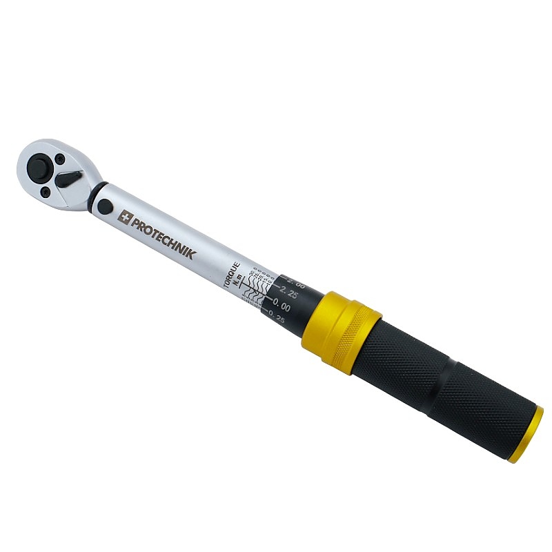 Динамометричният ключ PRO-TECHNIK е незаменим инструмент за всеки, който има нужда от прецизно затягане на винтове с определена сила. Благодарение на него ще избегнете проблеми, свързани с прекомерно затягане, което може да доведе до повреда на деликатни компоненти на велосипеди, мотоциклети или двигатели. Динамометричният ключ е изработен от хром-ванадиева и хром-молибденова стомана, осигурява издръжливост и устойчивост на износване, а компактните му размери и удобната дръжка улесняват работата на труднодостъпни места.