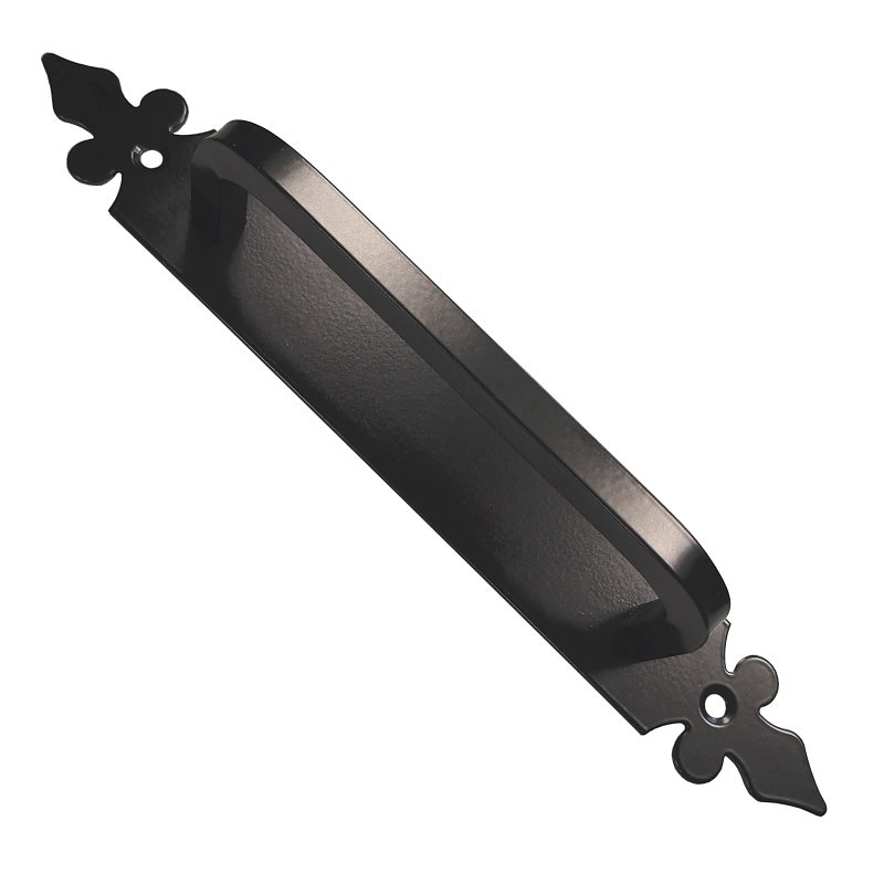 Черна ретро дръжка за врата LILIA XL е стилна дръжка, изработена от стомана, идеална за плъзгащи се врати, портали и вратички. Неговият уникален дизайн в планински стил добавя характер към всяко пространство. Дръжката е с орнаменти във формата на лилия, които придават елегантност.