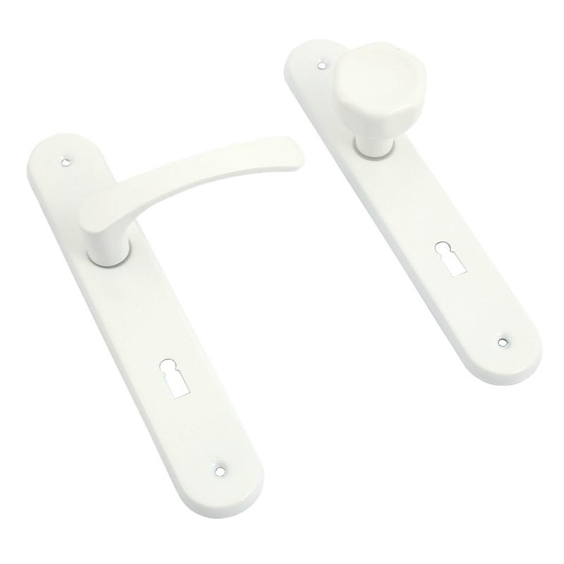 Дръжка за врата 90 мм MK бяла за патрон може да се използва за интериорни врати, стаи, както и за портали, врати, оградни портали и др. Тя е практична и естетична, идеално се вписва в различни интериори.