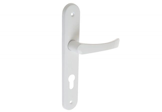 Дръжка за интериорни и стайни врати с дълга планка. Изработен е от издръжлив прахово боядисан материал. Дръжката е със тефлонов пръстен, което я прави по-лесна за използване. Монтира се лесно и пасва на врати с дебелина 35-50 мм. Размерът на дръжката е 72 мм, а цветът е бял RAL9016. Отворът в дръжката ви позволява да използвате секретен ключ.
