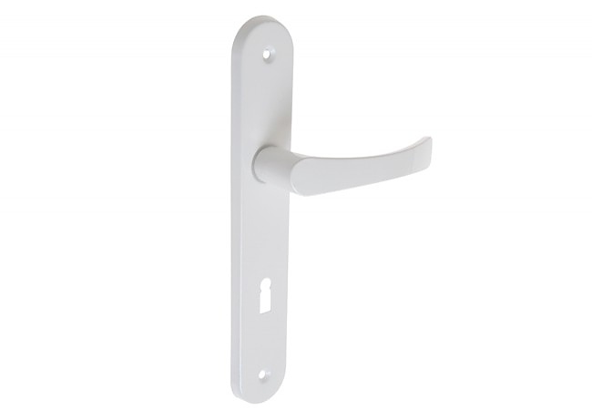 Дръжка за интериорни и стайни врати с дълга планка. Изработен е от издръжлив прахово боядисан материал. Дръжката е със тефлонов пръстен, което я прави по-лесна за използване. Монтира се лесно и пасва на врати с дебелина 35-50 мм. Размерът на дръжката е 90 мм, а цветът е бял RAL9016. Отворът в дръжката ви позволява да използвате обикновен ключ.