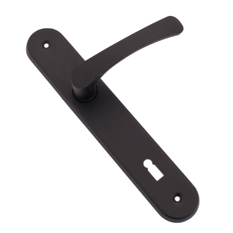 Дръжка за интериорни и стайни врати с дълга планка. Боядисани с издръжлив прахов лак, което гарантира високо качество и издръжливост. Продуктът има усилвател, което го прави по-лесен за използване. Лесното сглобяване гарантира удобна инсталация. В комплекта има и монтажни винтове за врати с дебелина 35-50 мм. Размерите на четвърта са 8x8 мм, а размерът на дръжката е 90 мм. Цветът на дръжката е черен, а дупката в дръжката е предназначена за обикновен ключ.
