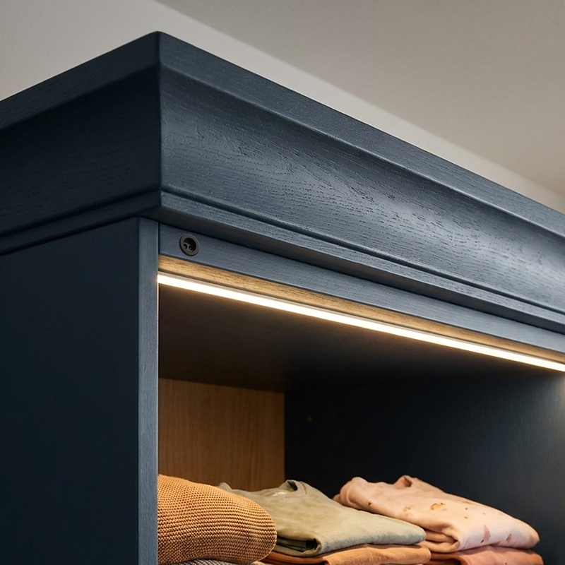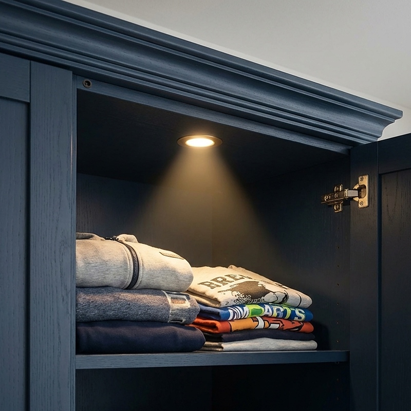 IR INTRA е компактен инфрачервен превключвател, работещ с инфрачервени лъчи, предназначен за автоматично управление на LED осветлението в мебелите. Той е идеален за шкафове с една врата, чекмеджета и по-малки вградени шкафове.