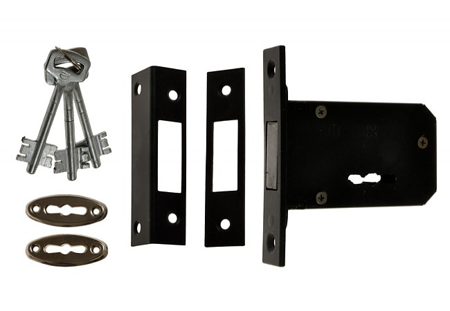 Вградена брава за дървена или метална врата с двубитов ключ.
