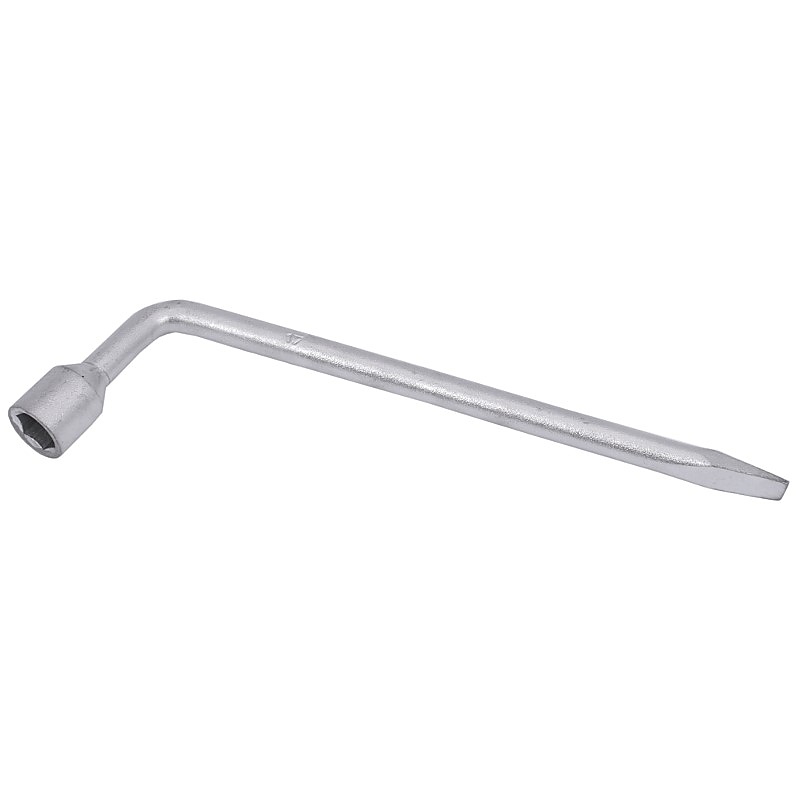 Ключът за гуми SMART Bent е основен инструмент във всяка автомобилна работилница. Изработен от издръжлива въглеродна инструментална стомана, ключът е кован, закален и темпериран, което гарантира неговата издръжливост и устойчивост на повреди. Повърхността му е покрита със защитно хромирано покритие, което допълнително го предпазва от корозия, а полираната глава осигурява естетичен външен вид. Благодарение на вложката 17 мм и дължината 280 мм, ключът е идеален за работа с автомобилни джанти, предлагайки правилния въртящ момент за затягане на винтове. Ергономичната дръжка с диаметър 13,5 мм гарантира здрав захват и комфорт на употреба.