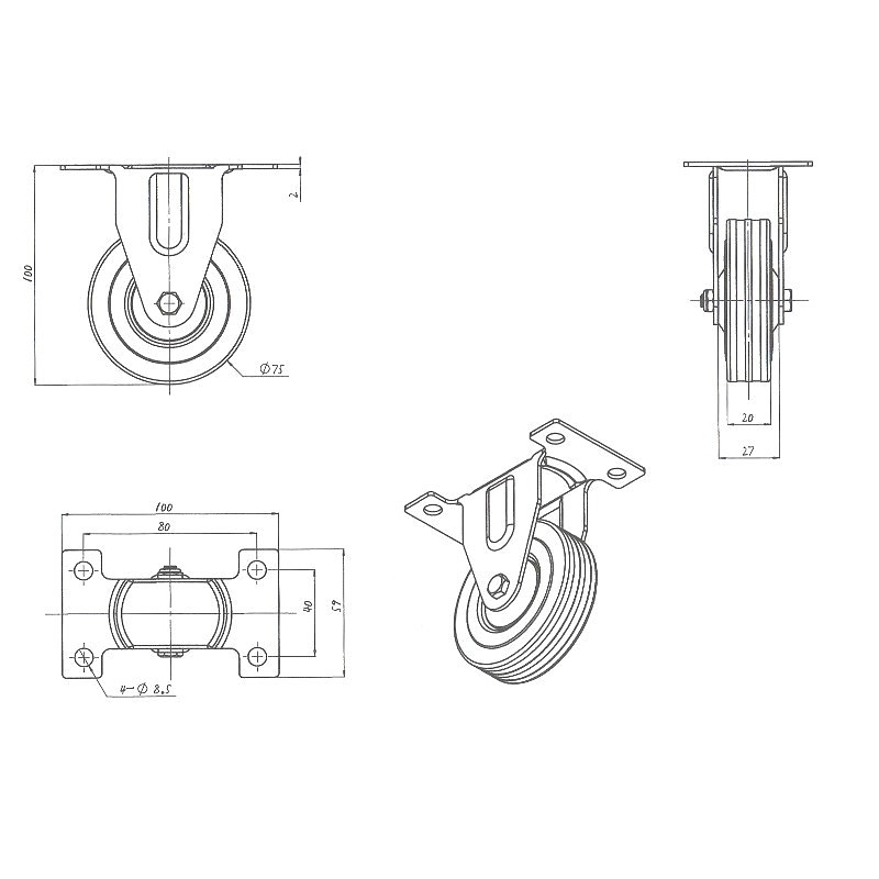 - Съдържание на опаковката: 1 брой 75 мм движещо се колело с фиксирана основа и интегрирана монтажна плоча; Крепежните елементи не са включени.
