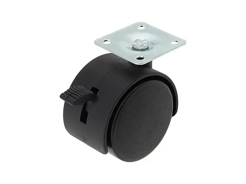 Колелце за мебели, пластмасово колело d-50мм с метална монтажна платформа със спирачка