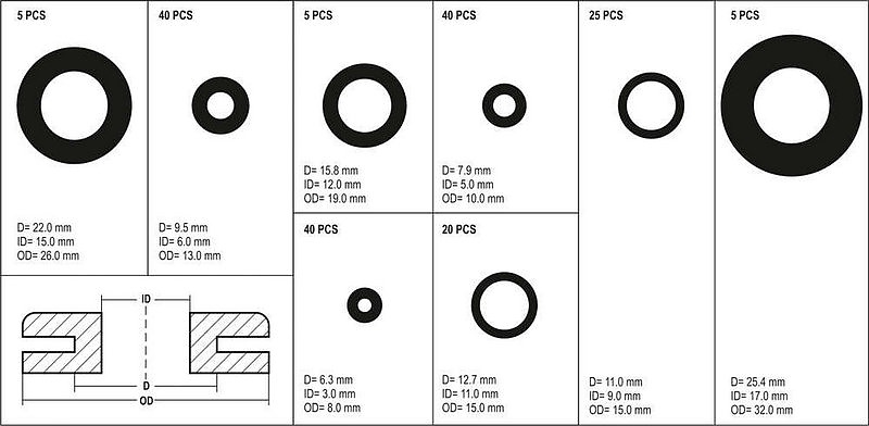 Комплект гумени втулки 180 части BOXX