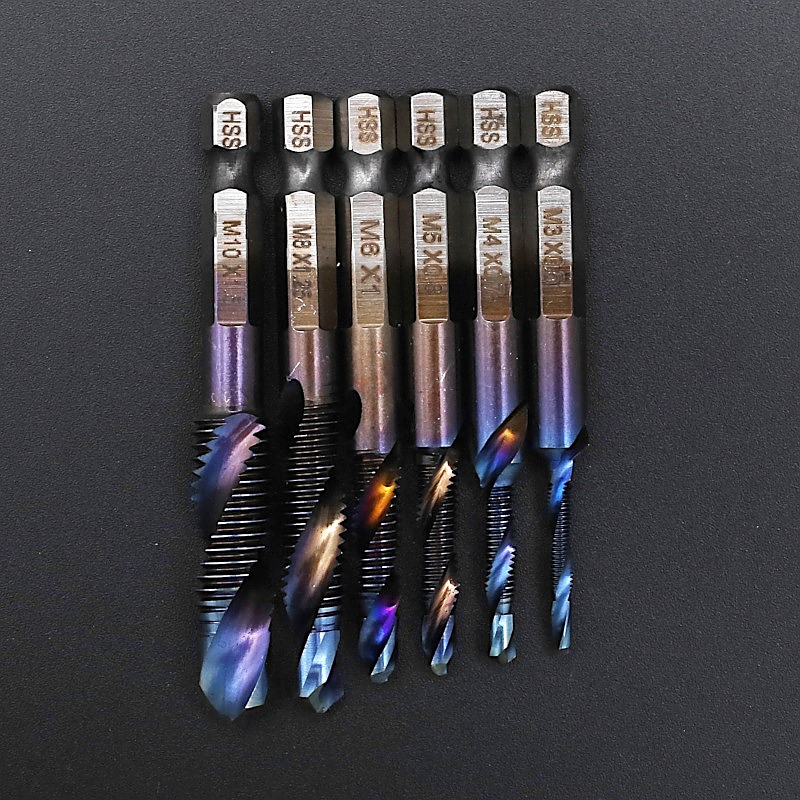 - Комплект от 6 резбонарезни свредла, размери от M3 до M10