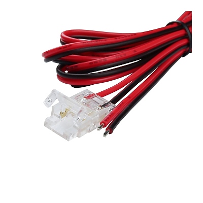 Кабелът ви позволява бързо да свържете 8 mm широка COB LED лента без необходимост от запояване, което често е трудно при свързване на осветление. Просто поставете лентата в конектора и я затегнете. Монтажът е лесен и гарантира издръжливостта на връзката. Кабелът завършва без щепсел за директно свързване към захранването.