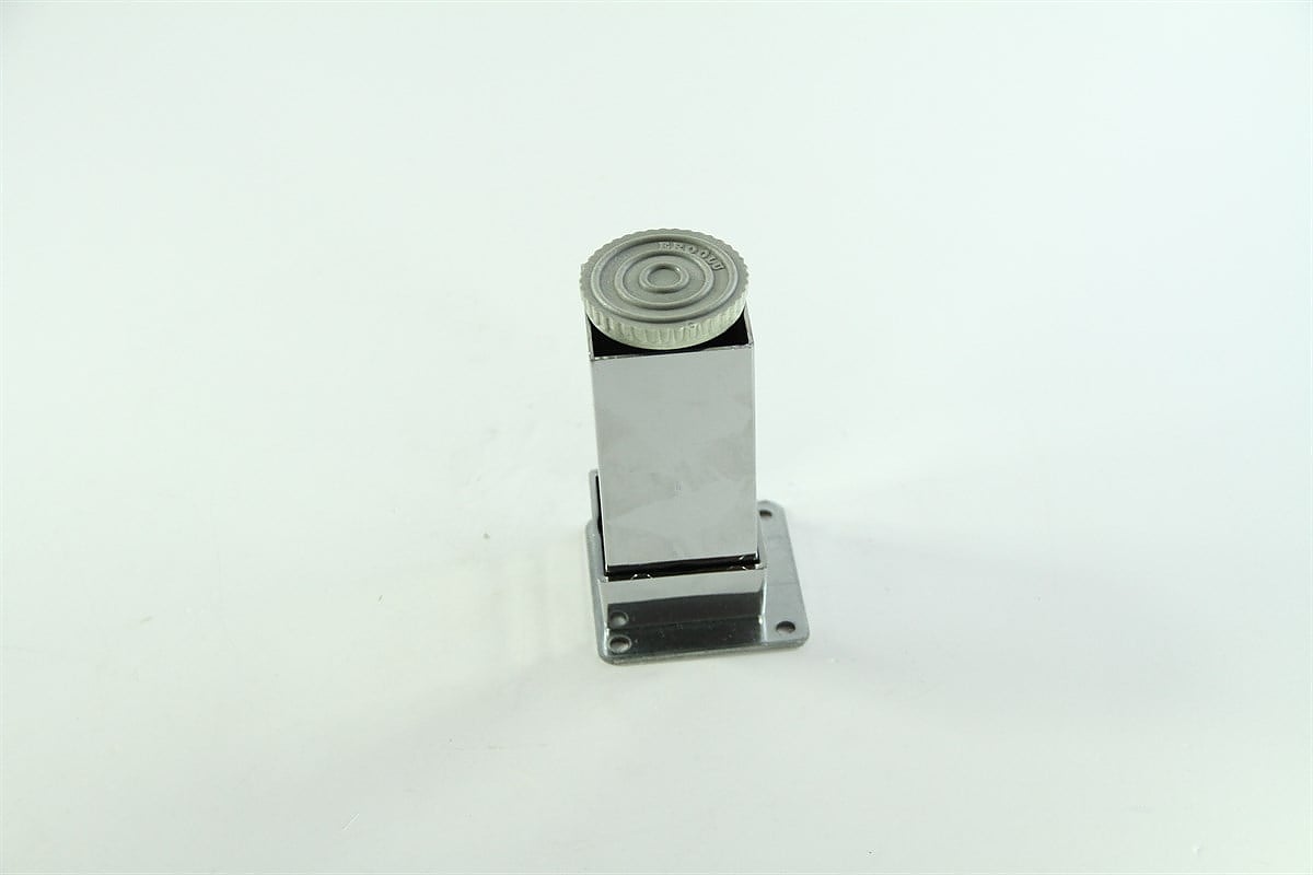 Универсален квадратен мебелен крак с диаметър 50 мм, предлага се в четири размера. Пластмасов плъзгач предпазва покритията от случайно надраскване. Регулиране в диапазона от +10 мм ще осигури стабилност на мебелите, дори и върху най-неравните повърхности. Предлага се в мат хром.Изработен от алуминий има здрава и солидна конструкция