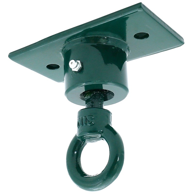 Масивна стоманена кука за люлки, хамаци и боксови чували, позволяваща въртене на 360°. Снабден със сферична става, осигуряваща плавно движение. Има гресьорка за продължителна употреба. Перфектен за създаване на домашна детска площадка.