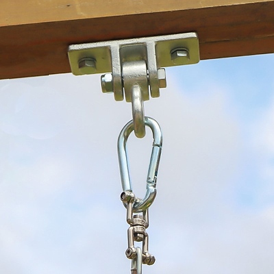 Масивна кована люлка, изработена от поцинкована огнеупорна стомана. Снабден с вътрешна месингова втулка, която осигурява лагеруване, предотвратява триене и осигурява дълга, гладка и тиха работа. Перфектният продукт за създаване на домашна детска площадка или парк за деца.