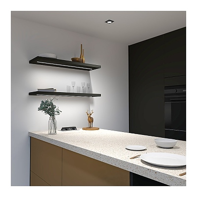 Изключително привлекателен поради много плиткия монтаж. Профилът изглежда много дискретен и елегантен, когато е монтиран. Работи чудесно както в обзавеждането както и на други места. Напълно е съвместим с таваните Хънтър Дъглас
