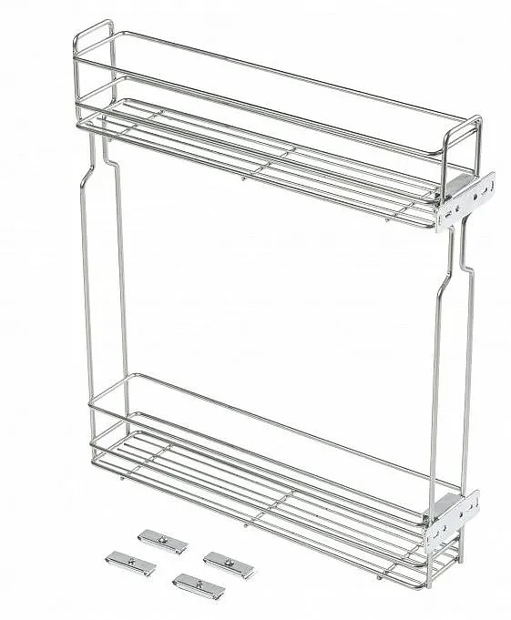 Странична кошница на две нива в модул 200 мм, без водачи, с крепежни елементи, цинк - изтегляща се система за съхранение, монтирана в долен модул на кухненския модул. Кошницата е направена така, че да е удобно да поставяте в нея бутилки с напитки и течни храни, поради което се нарича още поставка за бутилка.Има реглаж при монтажа на лицето на модула.